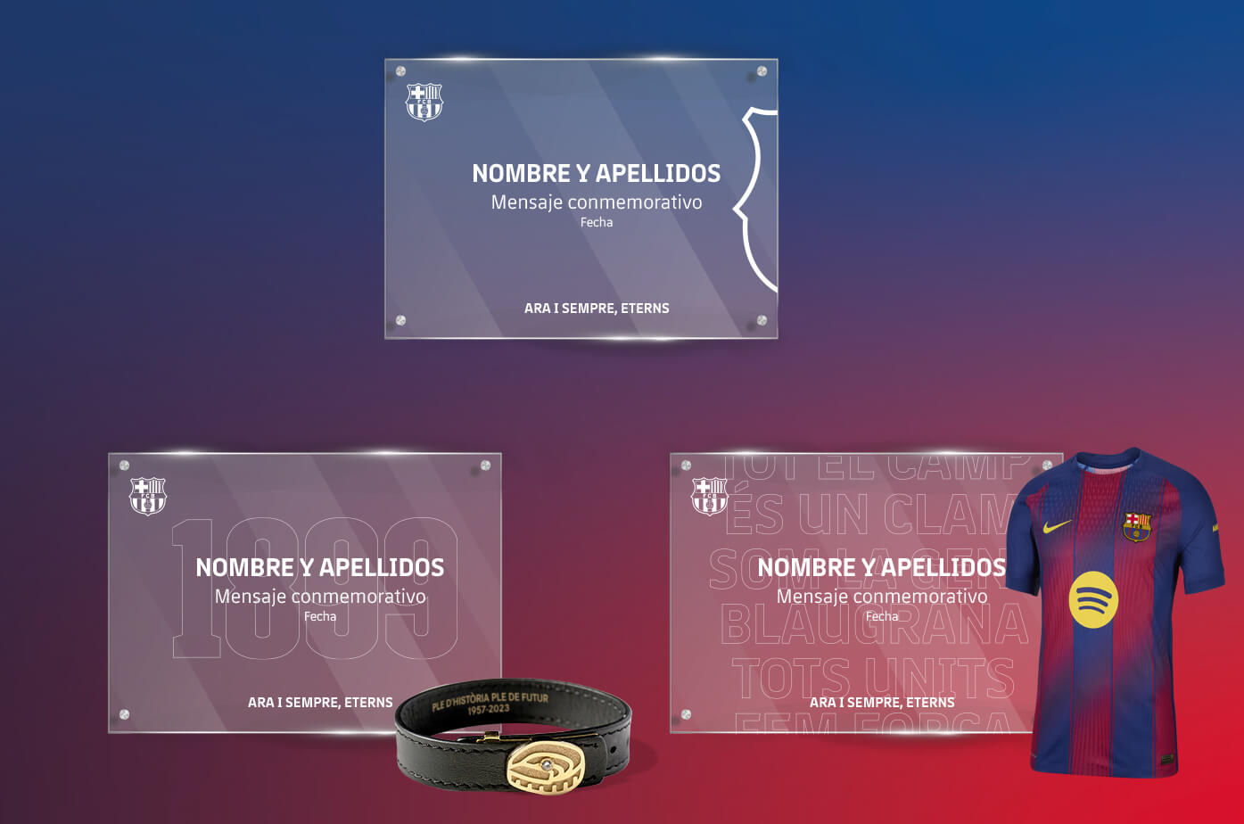 Con una de las placas conmemorativas personalizadas, une para siempre tu nombre al del FC Barcelona, formando parte de la historia del club blaugrana eternamente.